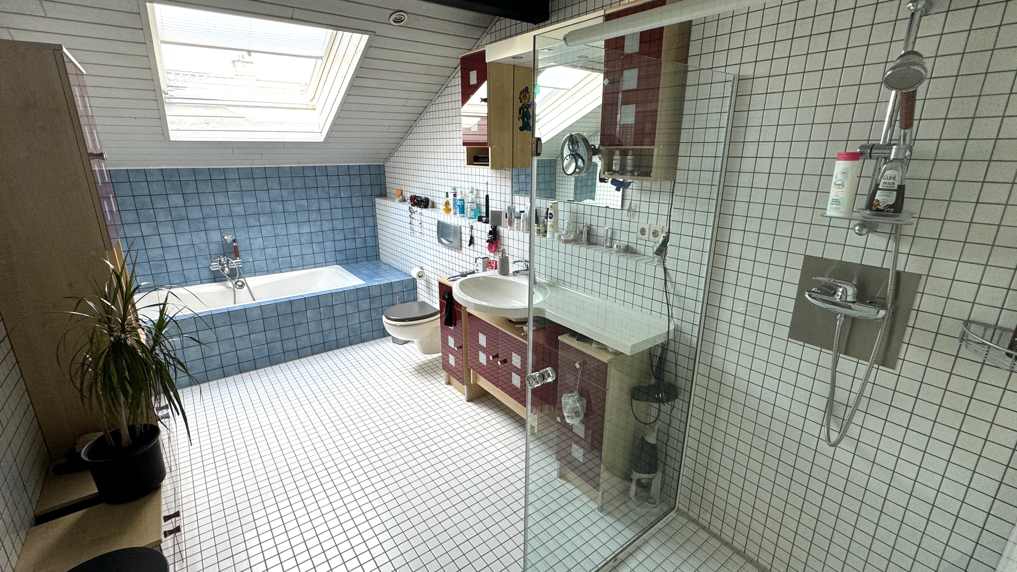 - Ausstattung des Bades Fenster Dusche Badewanne