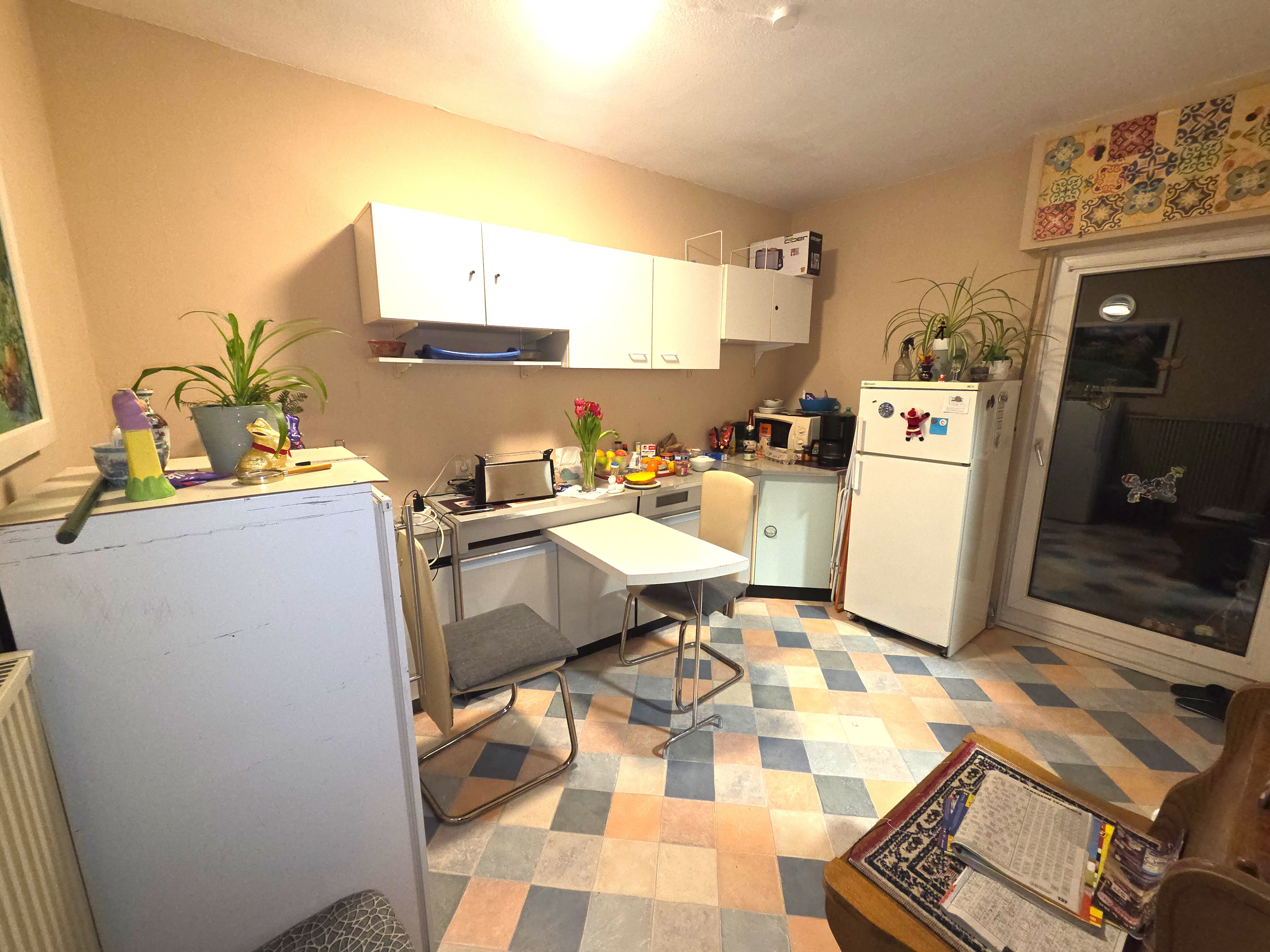 Wohnung 1: Wohnzimmer, Schlafzimmer, Esszimmer mit angrenzender kleiner Küche, Bad, Terrasse, Flur